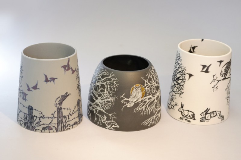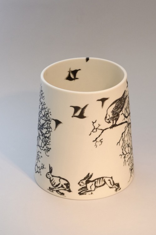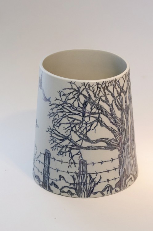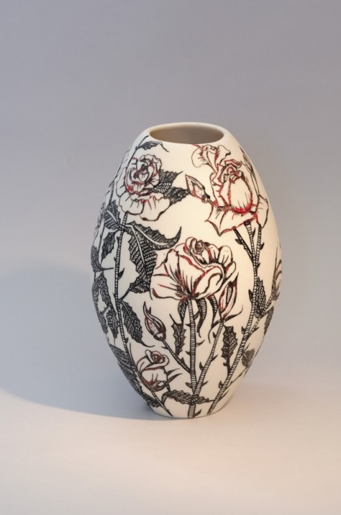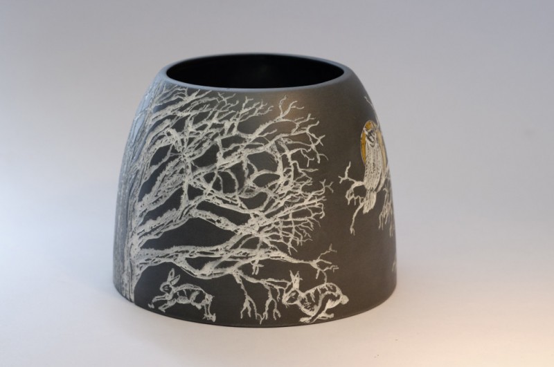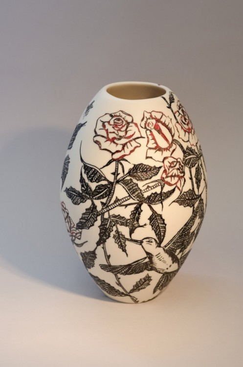 I like to illustrate through "clay etchings" on the form, a world in which small acts of everyday life reveals itself in fine detail.