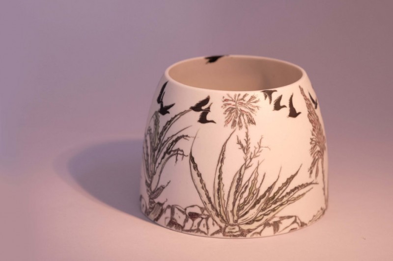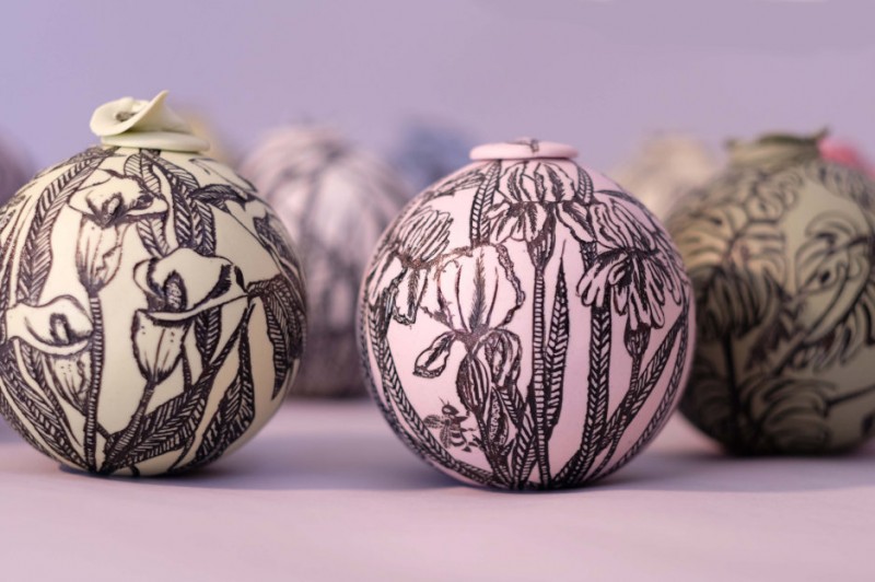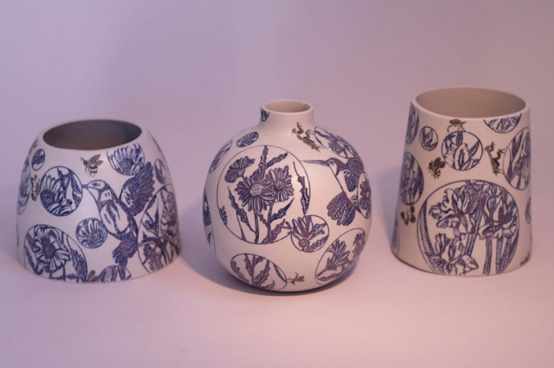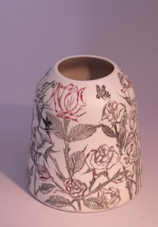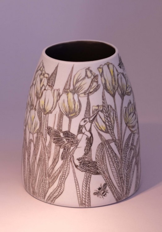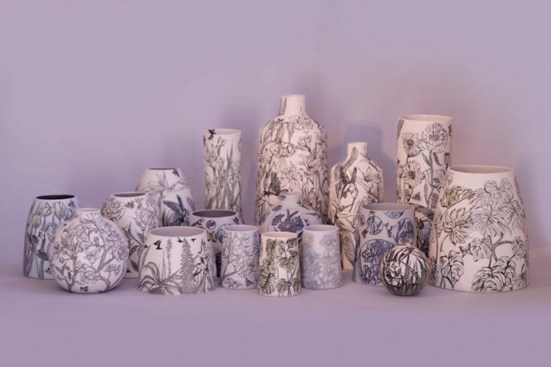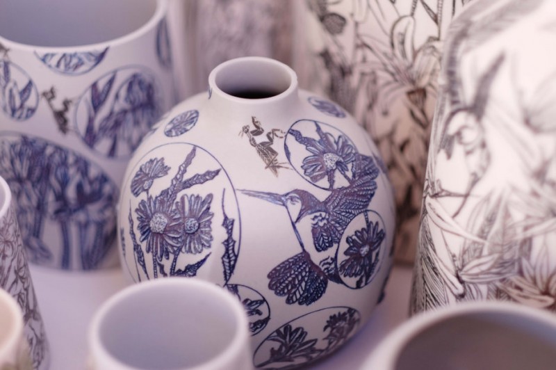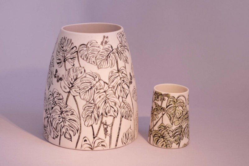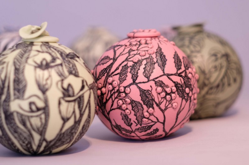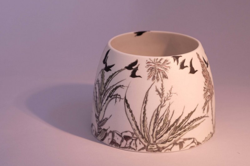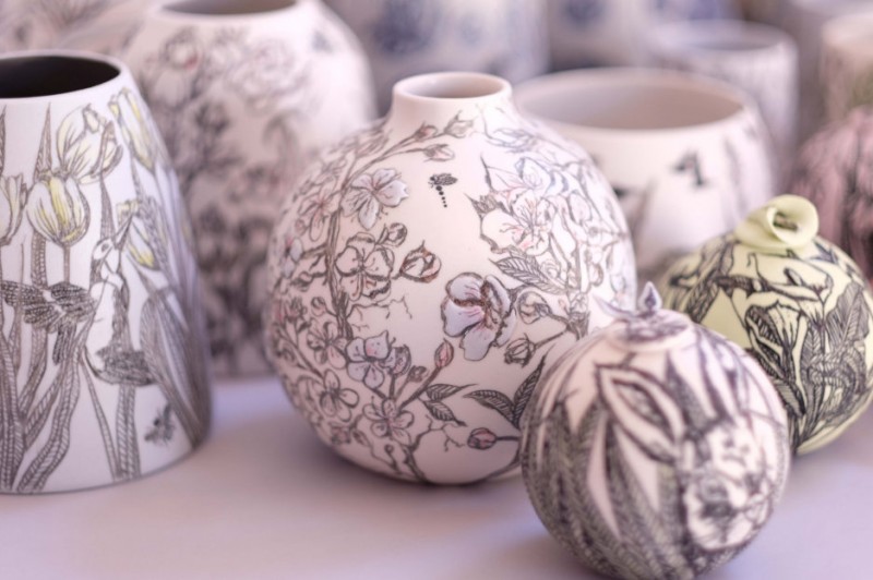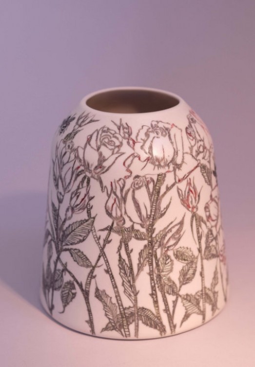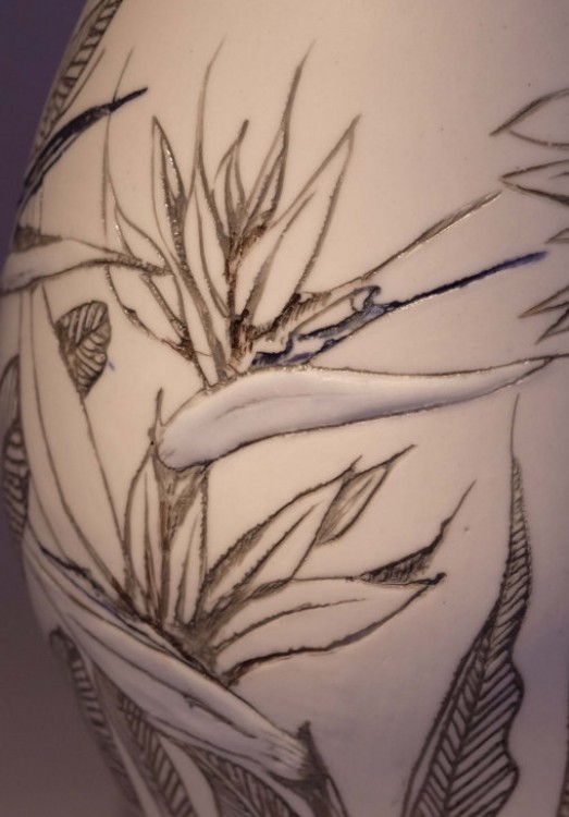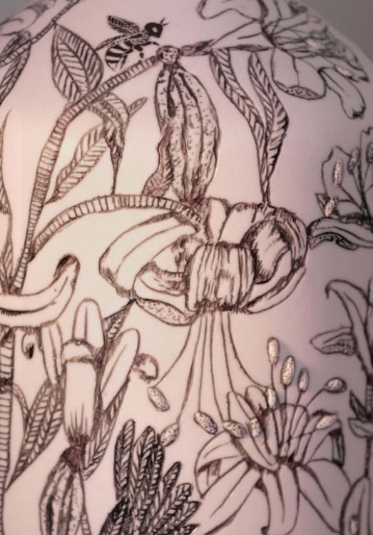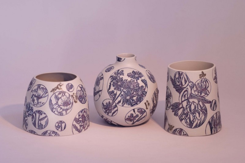 I like to illustrate through "clay etchings" on the form, a world in which small acts of everyday life reveals itself in fine detail.