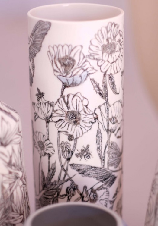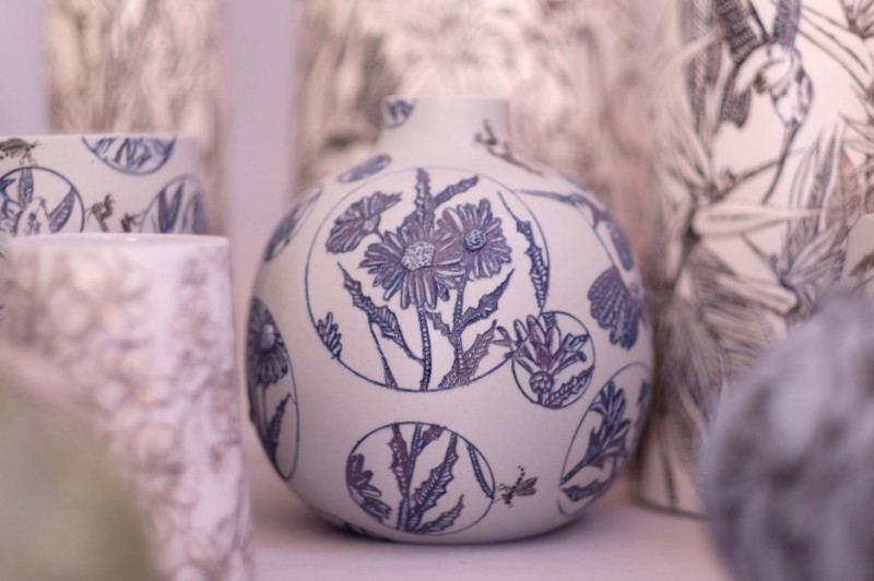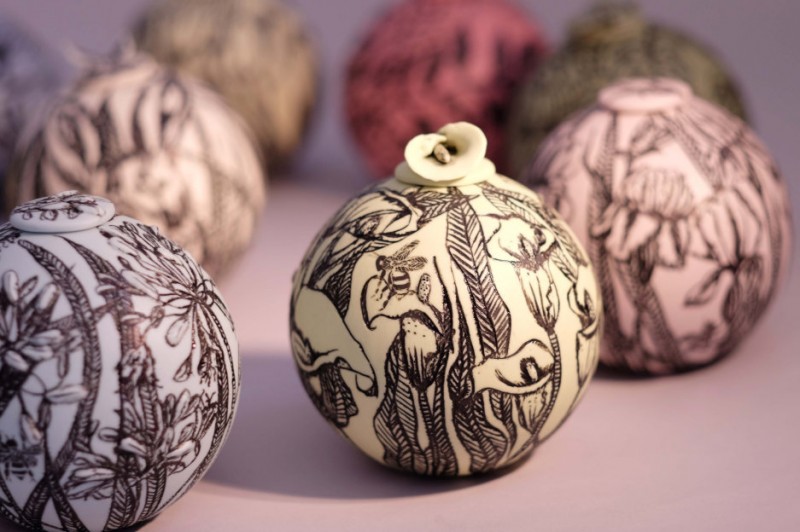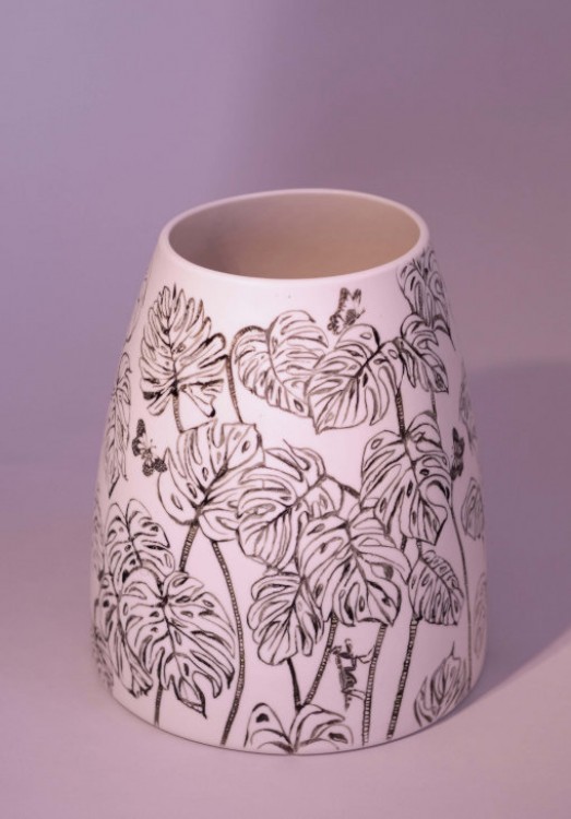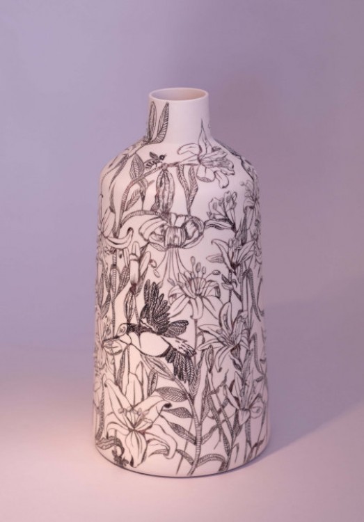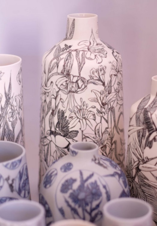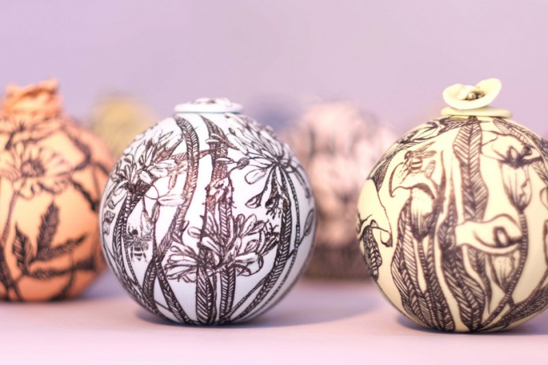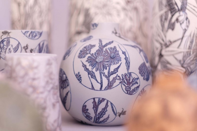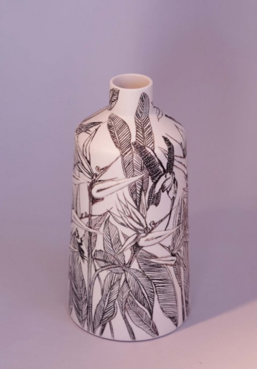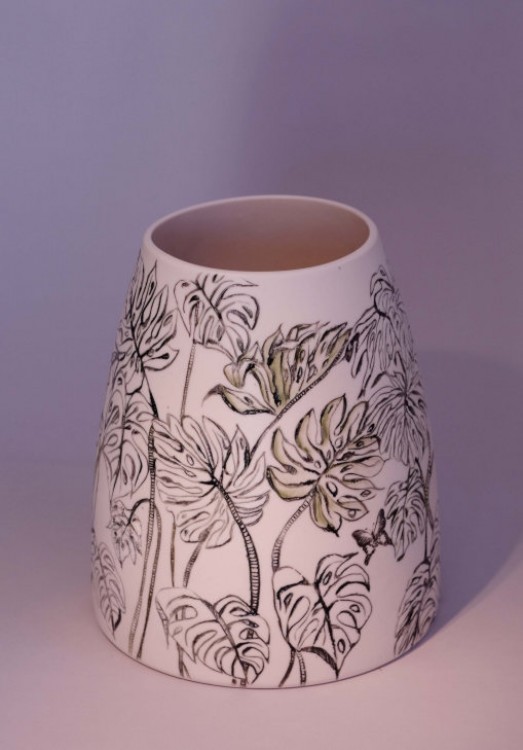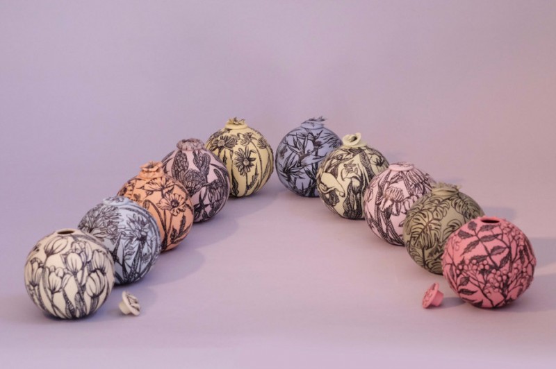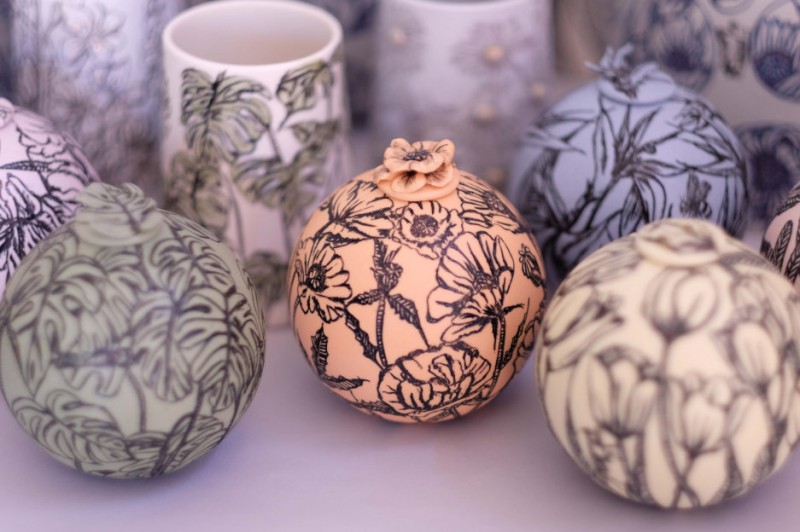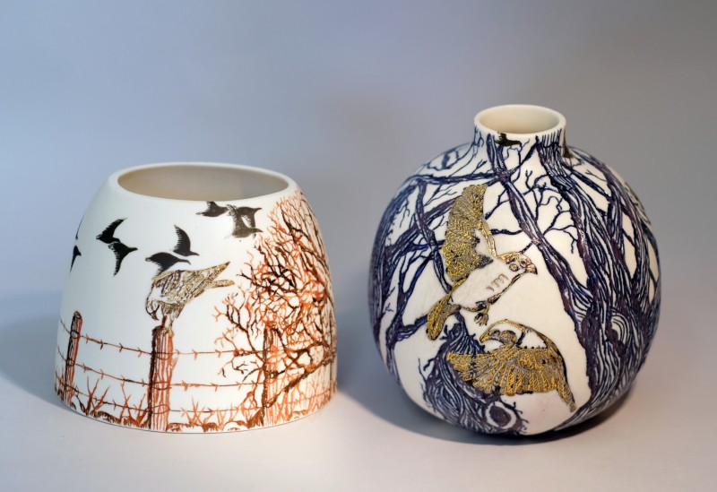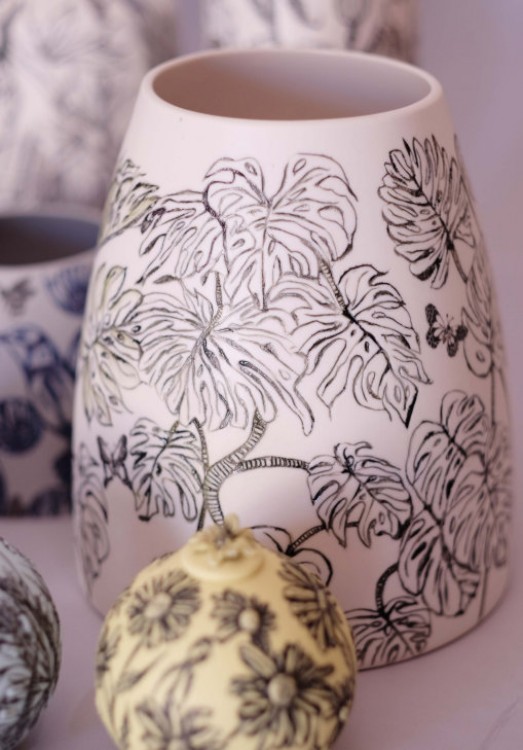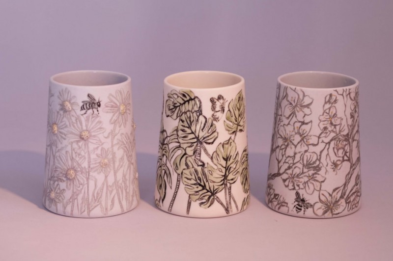 I like to illustrate through "clay etchings" on the form, a world in which small acts of everyday life reveals itself in fine detail.