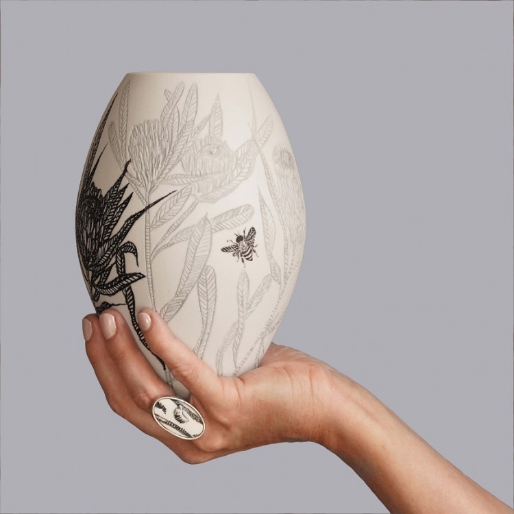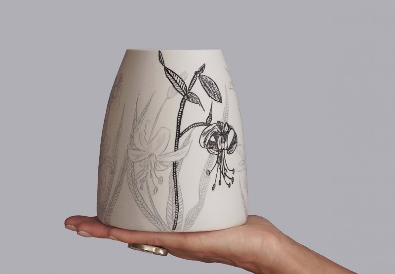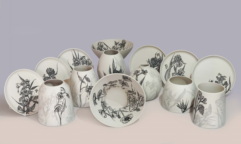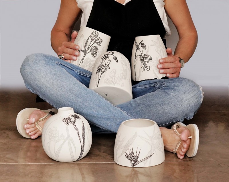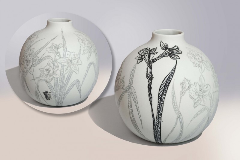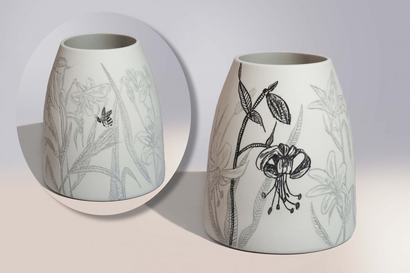 I like to illustrate through "clay etchings" on the form, a world in which small acts of everyday life reveals itself in fine detail.