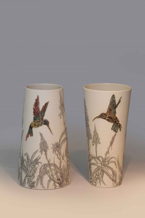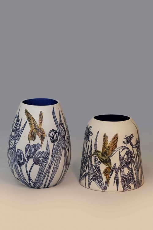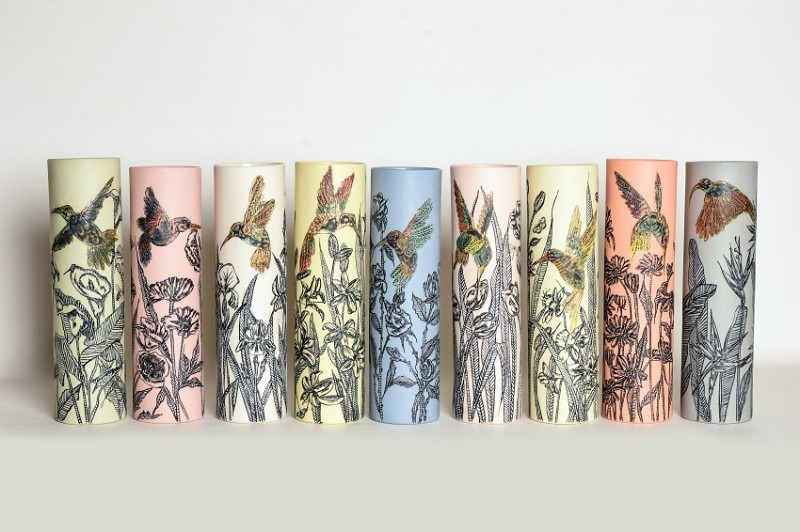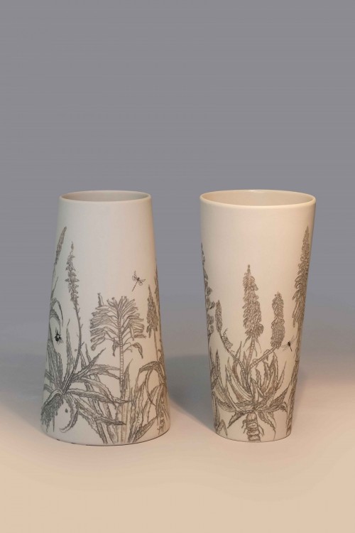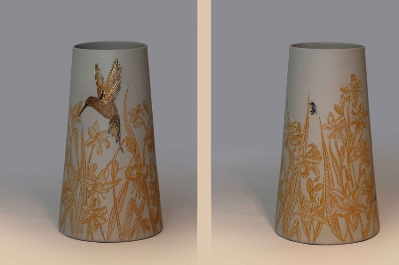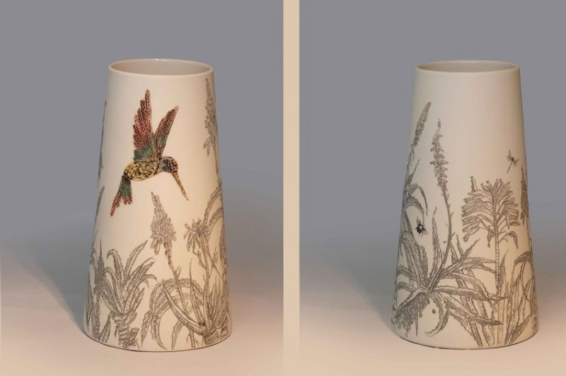 I like to illustrate through "clay etchings" on the form, a world in which small acts of everyday life reveals itself in fine detail.