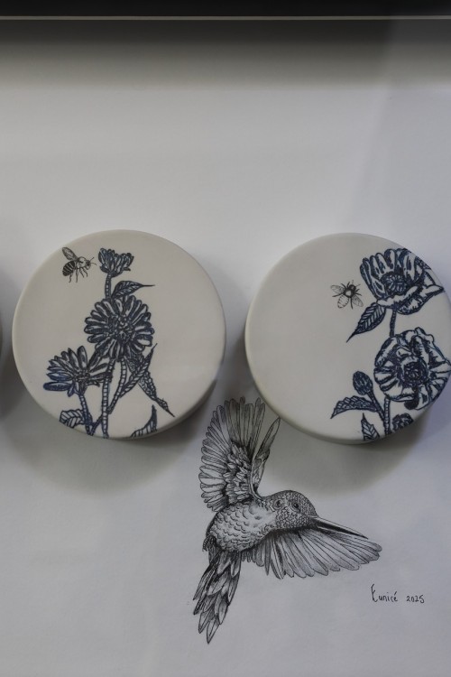 I like to illustrate through "clay etchings" on the form, a world in which small acts of everyday life reveals itself in fine detail.